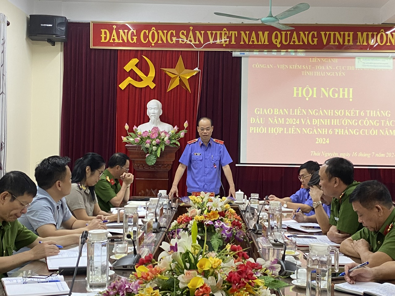 Thực hiện Quy định về chế độ giao ban liên ngành các cơ quan tư pháp tỉnh Thái Nguyên; Ngày 16/7/2024, Viện kiểm sát tỉnh Thái Nguyên chủ trì tổ chức Hội nghị sơ kết công tác phối hợp liên ngành các cơ quan tư pháp tỉnh 6 tháng đầu năm 2024. Đồng chí Phùng Đức Tiến- Viện trưởng VKSND tỉnh Thái Nguyên - chủ trì Hội nghị