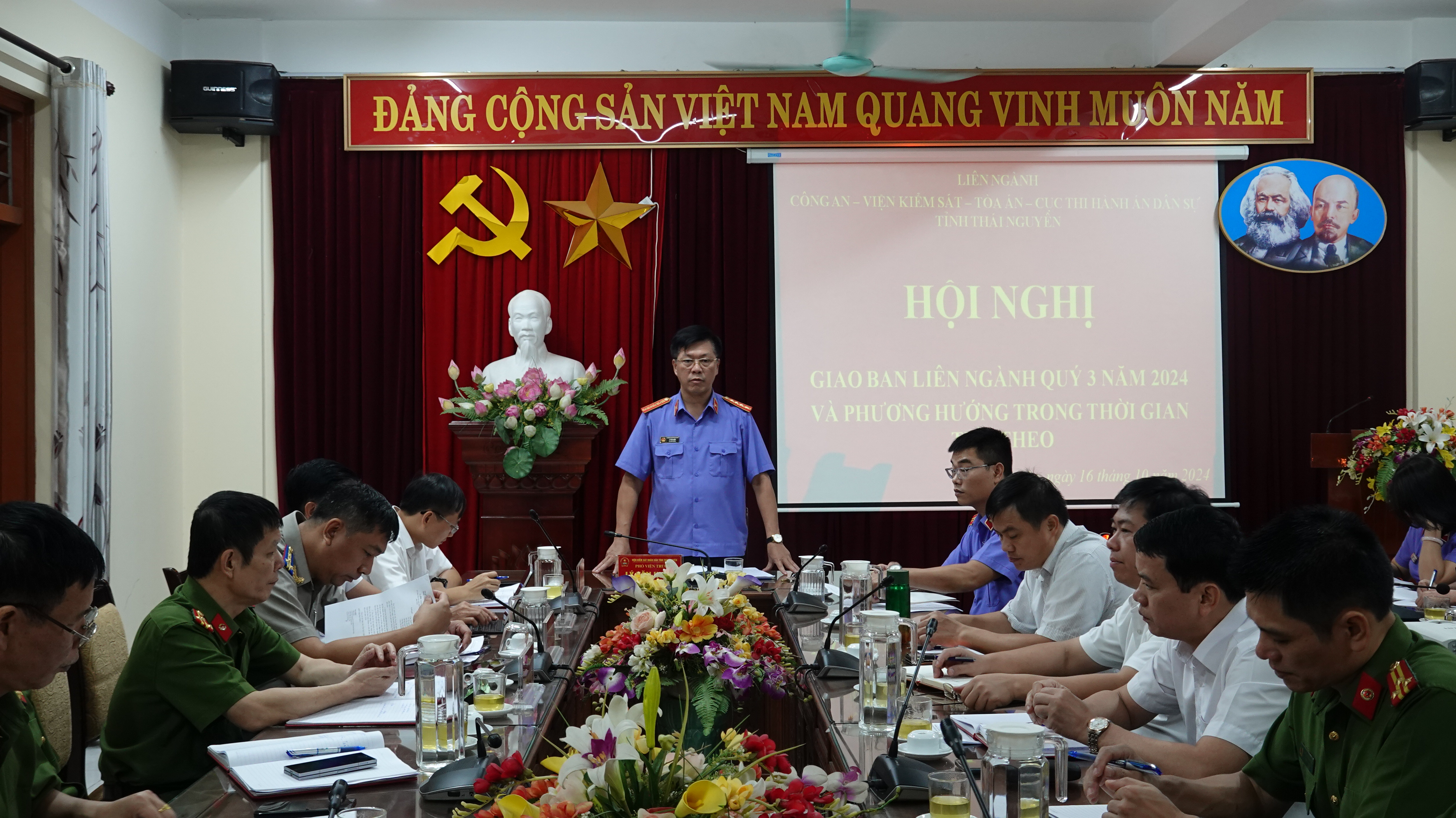 Thực hiện Quy định về chế độ giao ban liên ngành các cơ quan tư pháp tỉnh Thái Nguyên; Ngày 16/10/2024, Viện kiểm sát tỉnh Thái Nguyên chủ trì tổ chức Hội nghị sơ kết công tác phối hợp liên ngành các cơ quan tư pháp tỉnh quý 3 năm 2024.