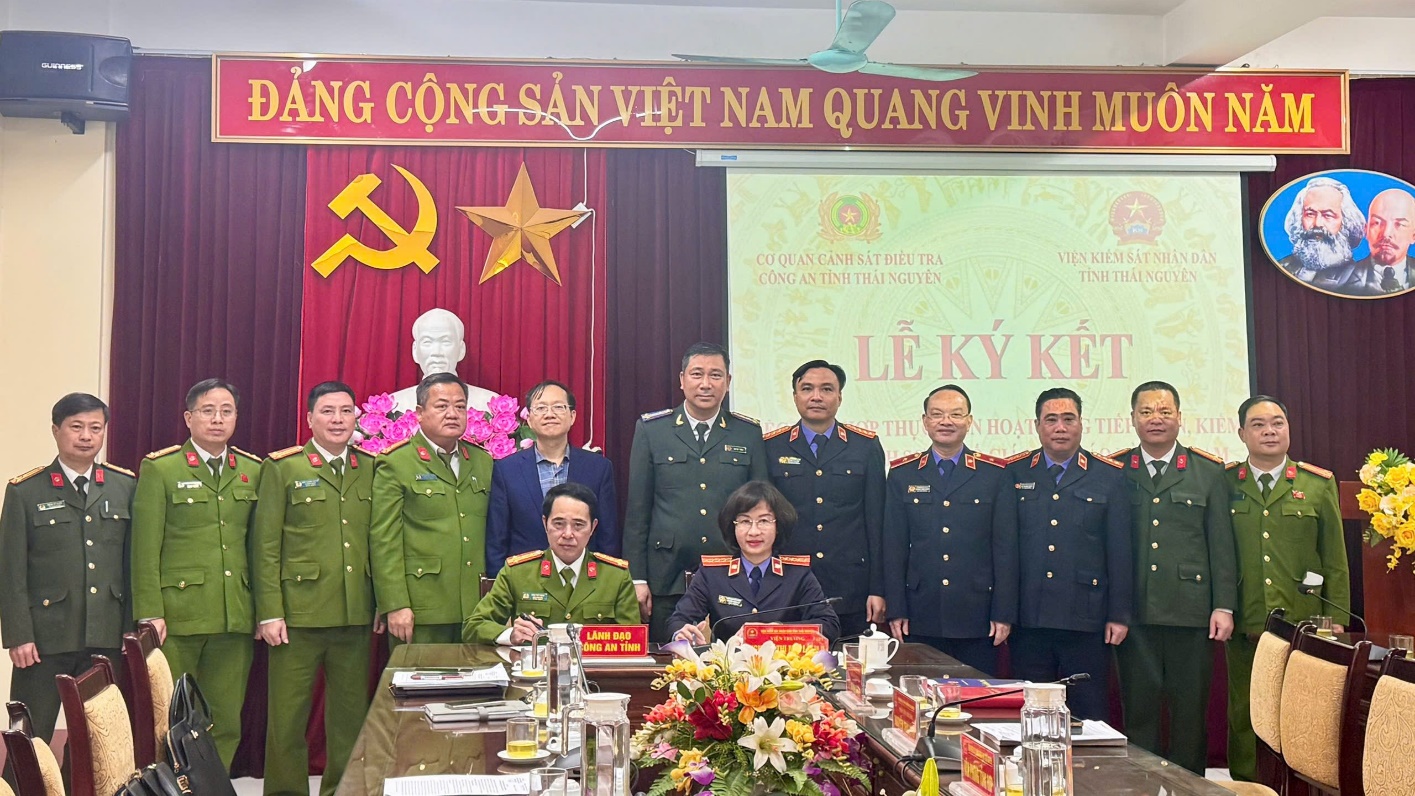 Ngày 19/01/2026, Viện kiểm sát nhân dân tỉnh Thái Nguyên phối hợp với Cơ quan Cảnh sát Điều tra Công an tỉnh Thái Nguyên tổ chức Lễ ký kết Hướng dẫn Liên ngành về công tác phối hợp thực hiện hoạt động tiếp nhận, kiểm tra, xác minh sơ bộ tố giác, tin báo về tội phạm