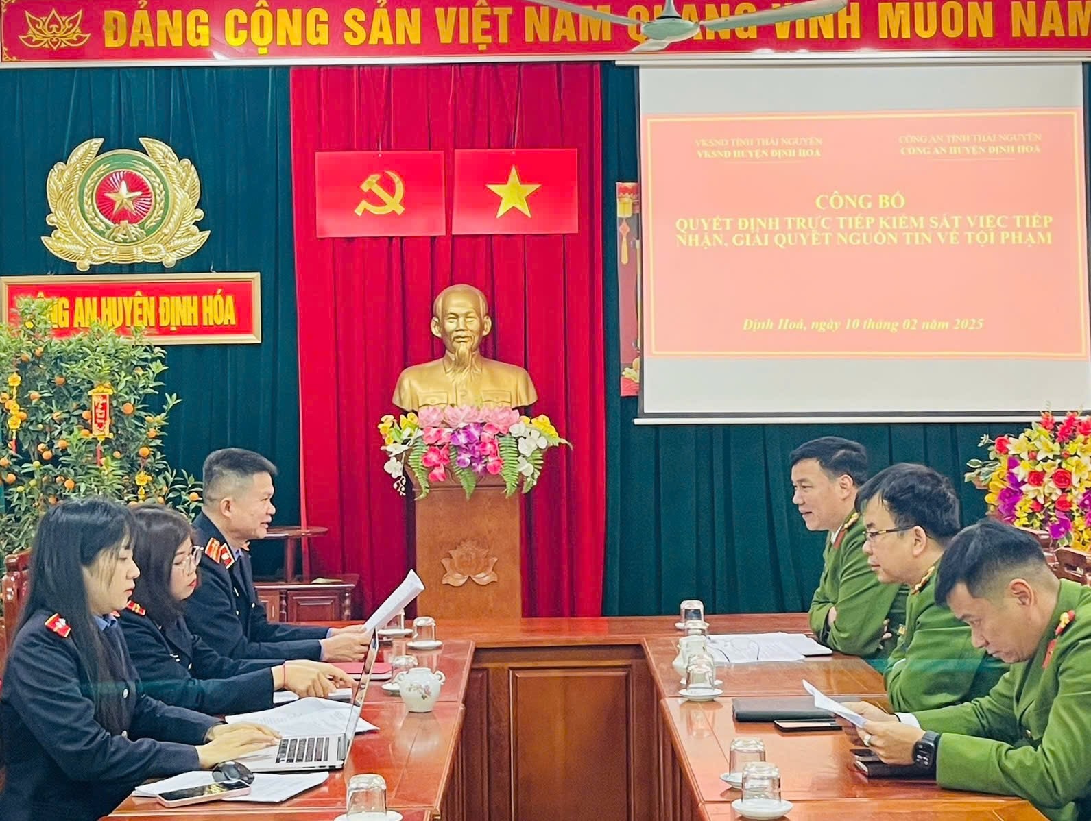 Thực hiện kế hoạch kiểm sát việc tiếp nhận, giải quyết nguồn tin về tội phạm năm 2025 của Viện kiểm sát nhân dân huyện Định Hóa, ngày 10/02/2025, Đoàn kiểm sát của Viện KSND huyện Định Hóa đã tiến hành kiểm sát trực việc tiếp nhận