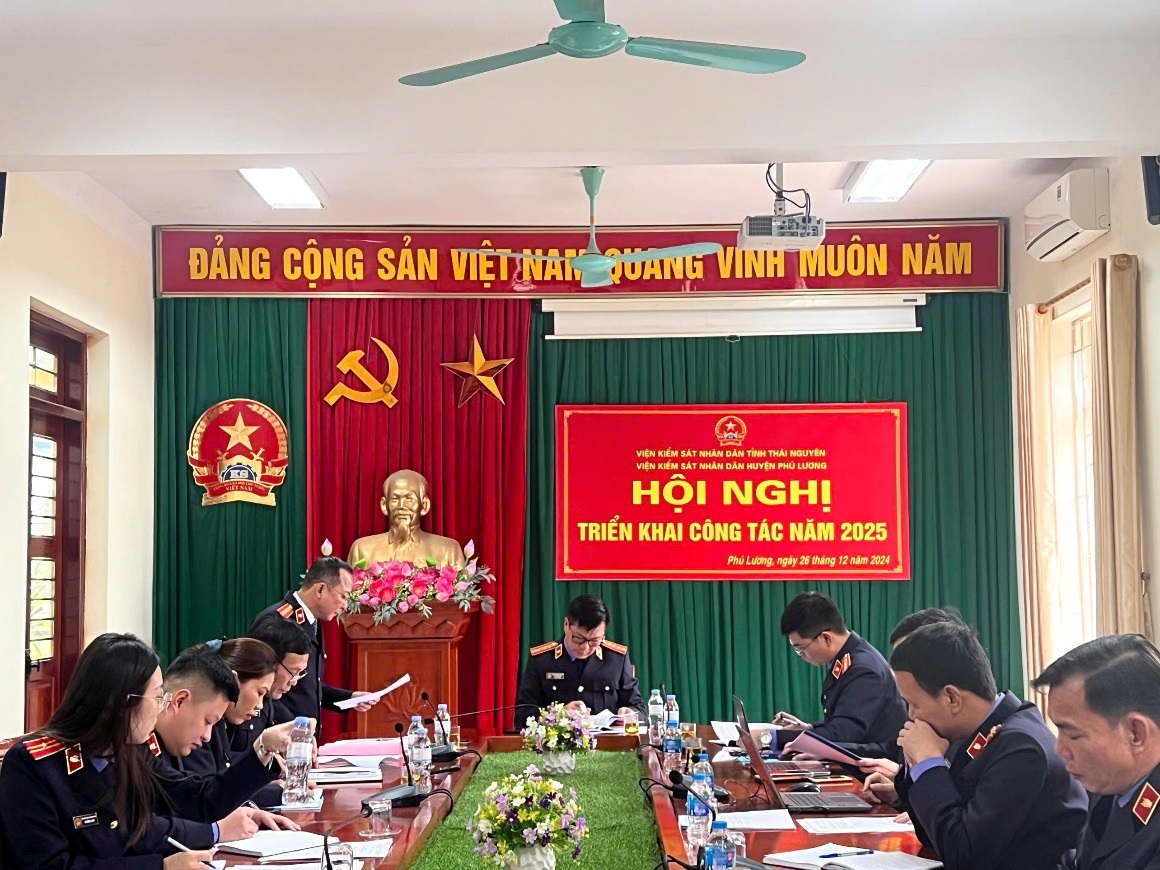 Ngày 26/12/2024, Viện kiểm sát nhân dân huyện Phú Lương tổ chức Hội nghị triển khai công tác năm 2025. Đến dự và chỉ đạo Hội nghị có đồng chí Lý Văn Huấn – Bí thư Ban cán sự Đảng, Viện trưởng VKSND tỉnh Thái Nguyên; cùng dự Hội nghị còn có đồng chí Nguyễn Đức Chiến - Chánh Văn phòng và các đồng chí đại diện các Phòng nghiệp vụ VKSND tỉnh.
